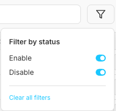 | Filter by status | Enable (toggle) | Show only enabled suggestions that are currently active and visible to users |