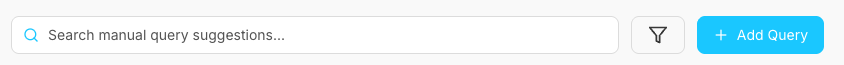 | Add Query Button | Cyan "+ Add Query" button (top right) | Opens Add Query Suggestion dialog | Create new manual suggestions to enhance search experience and promote specific terms |