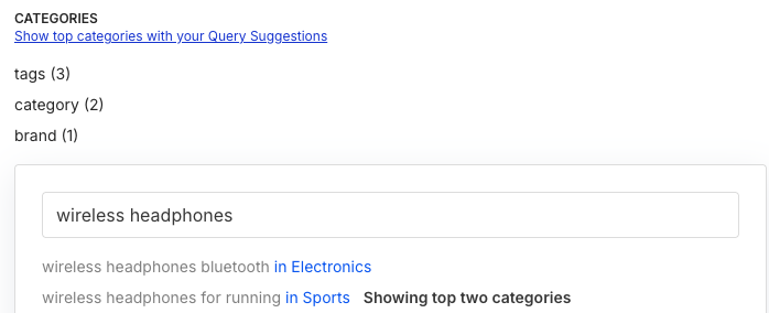 | Category-based suggestions | Show suggestions organized by categories | Structured navigation |