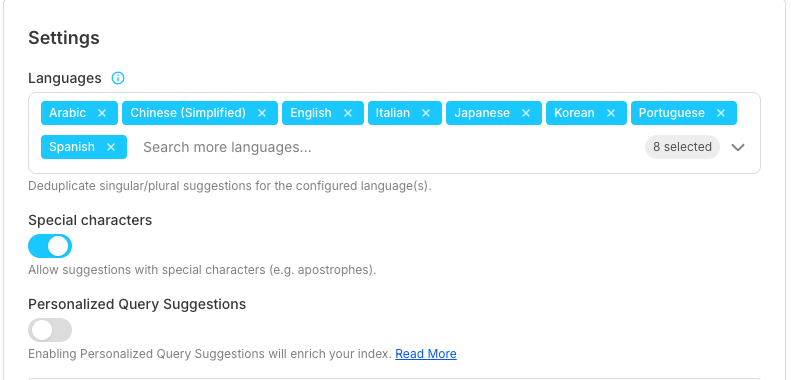 - Set how many characters users must type before seeing suggestions