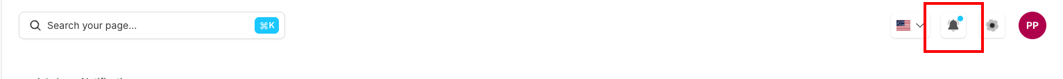 The notification system uses a bell in the top navigation bar. When you have unread notifications: