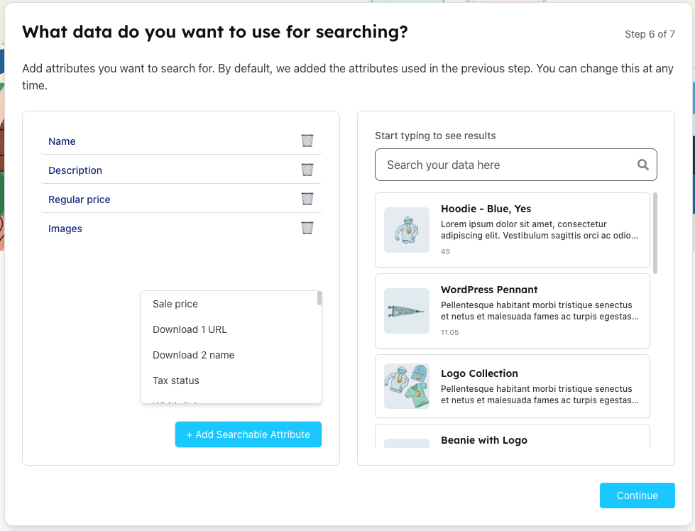 | Live Preview | Test search functionality with current attribute selection | Validates search behavior before finalization |