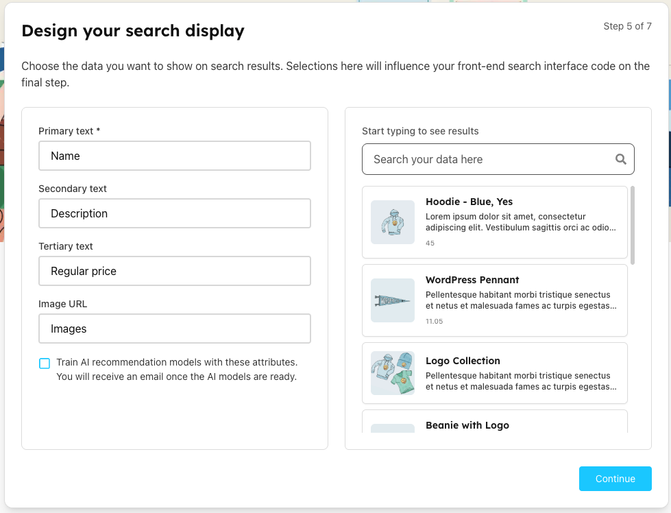 When you reach this step, the fields will be pre-populated based on your imported data. Here's what you'll see in the UI and how each field affects the search result display: